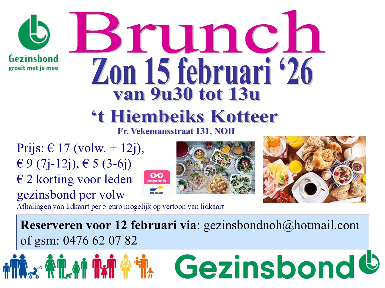 Le Gezinsbond (équivalent flamand de la Ligue des familles) de NOH a le plaisir de vous inviter à son brunch annuel.