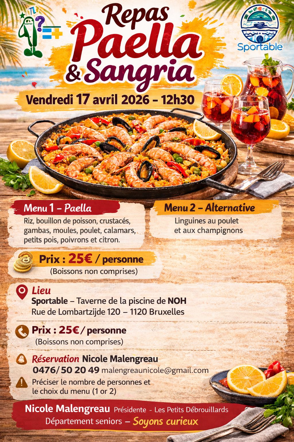 Nous vous donnons rendez-vous pour un repas Paella & Sangria plein de saveurs et de bonne humeur !