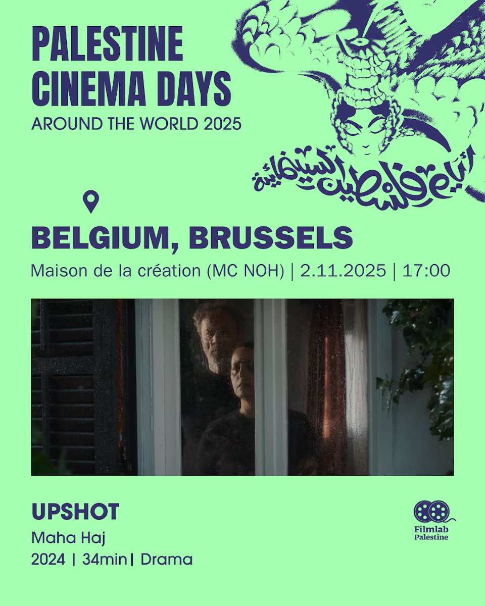 A l’occasion de l’initiative internationale Palestine Cinema Day, nous vous invitons à la projection de UPSHOT, un court métrage de Maha Haj, réalisatrice palestinienne. Après la projection, nous prévoyons des discussions et un repas vers 19h.