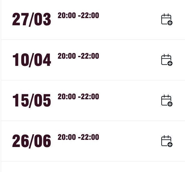 Prochaines dates programmées :