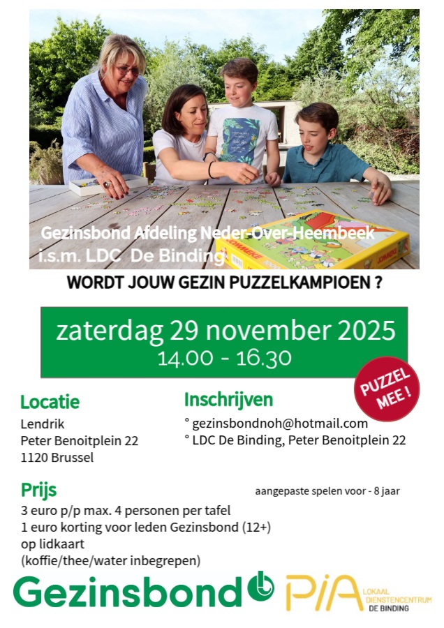 Samedi 29 novembre 2025 : Championnat de puzzle organisé par le Gezinsbond de NOH en collaboration avec LDC De Binding