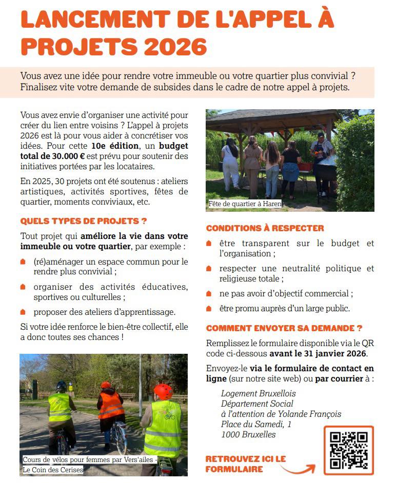 Pour plus d’infos : https://logementbruxellois.be/actua…/appel-a-projets-2026/