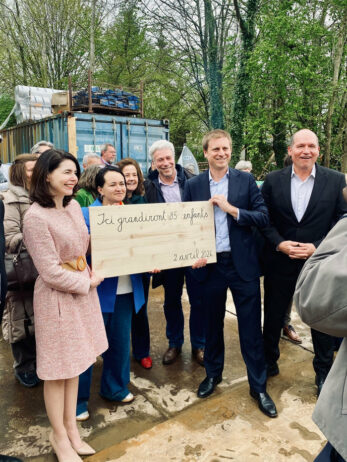 Ce 2 avril, la première pierre du nouveau bâtiment qui s’érigera juste en face de la ferme a été posée…