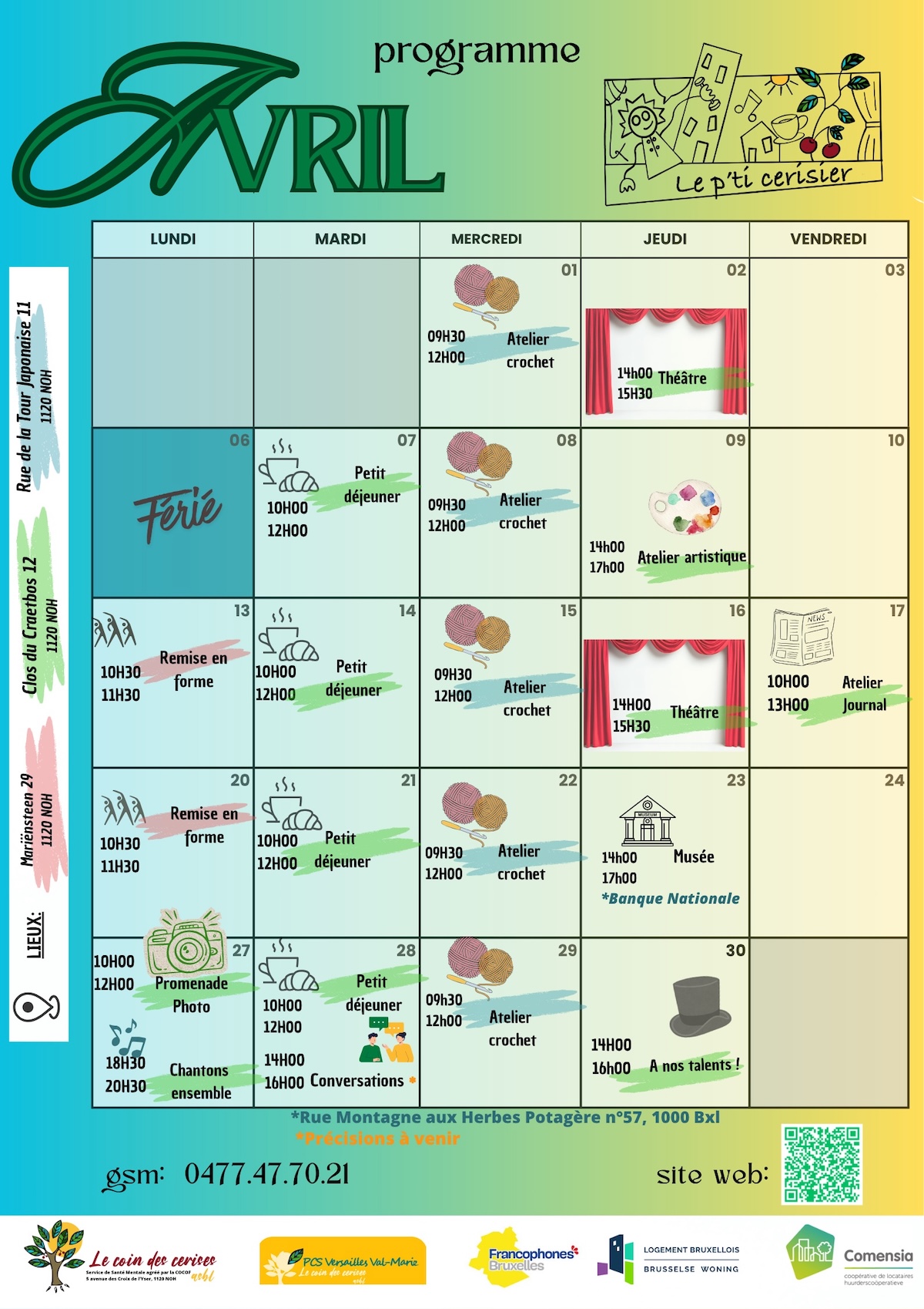 Programme du P’ti Cerisier pour avril 2026.