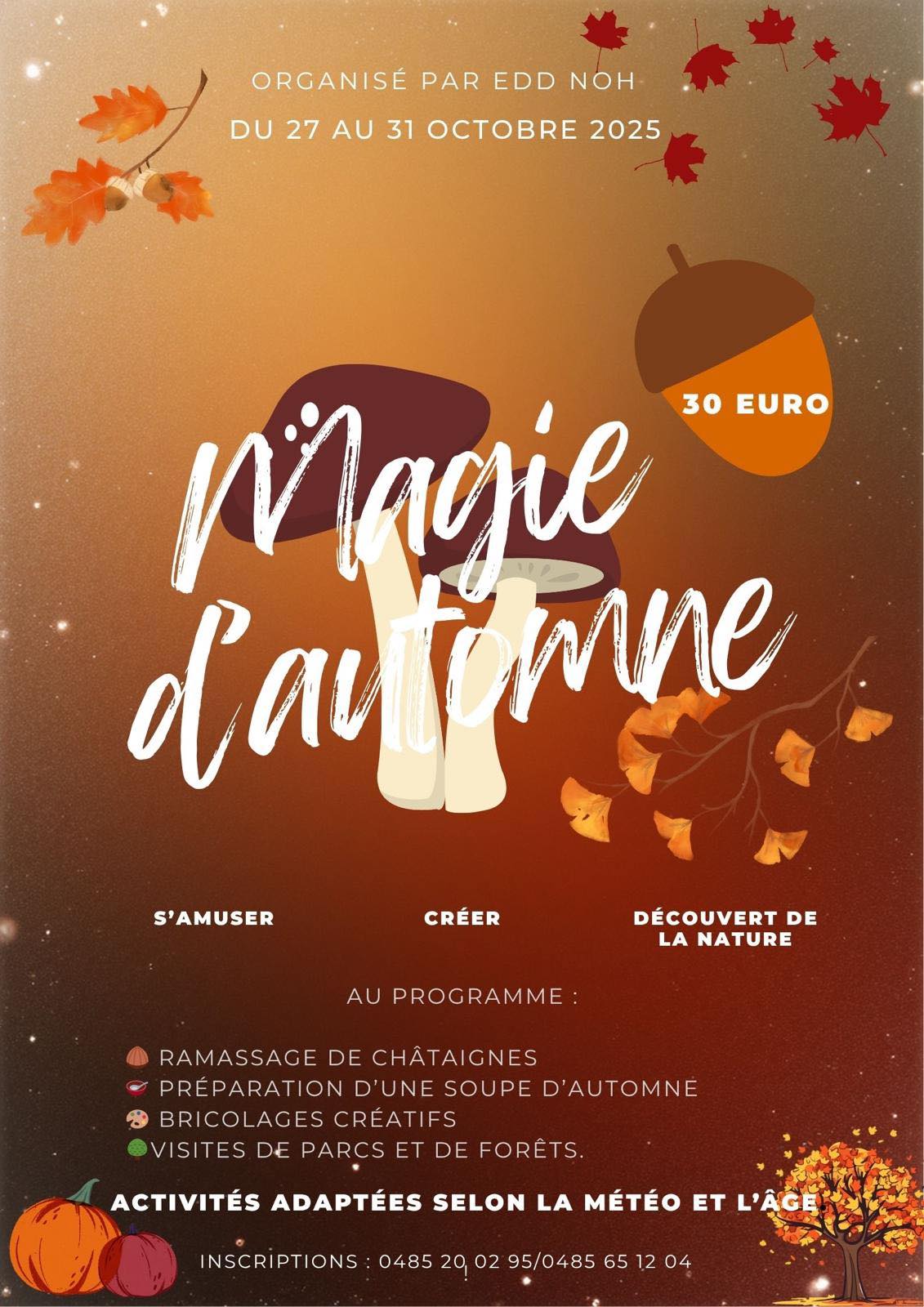 Nous organisons des activités durant la semaine du 27 au 31 octobre 2025, de 10h00 à 15h00.