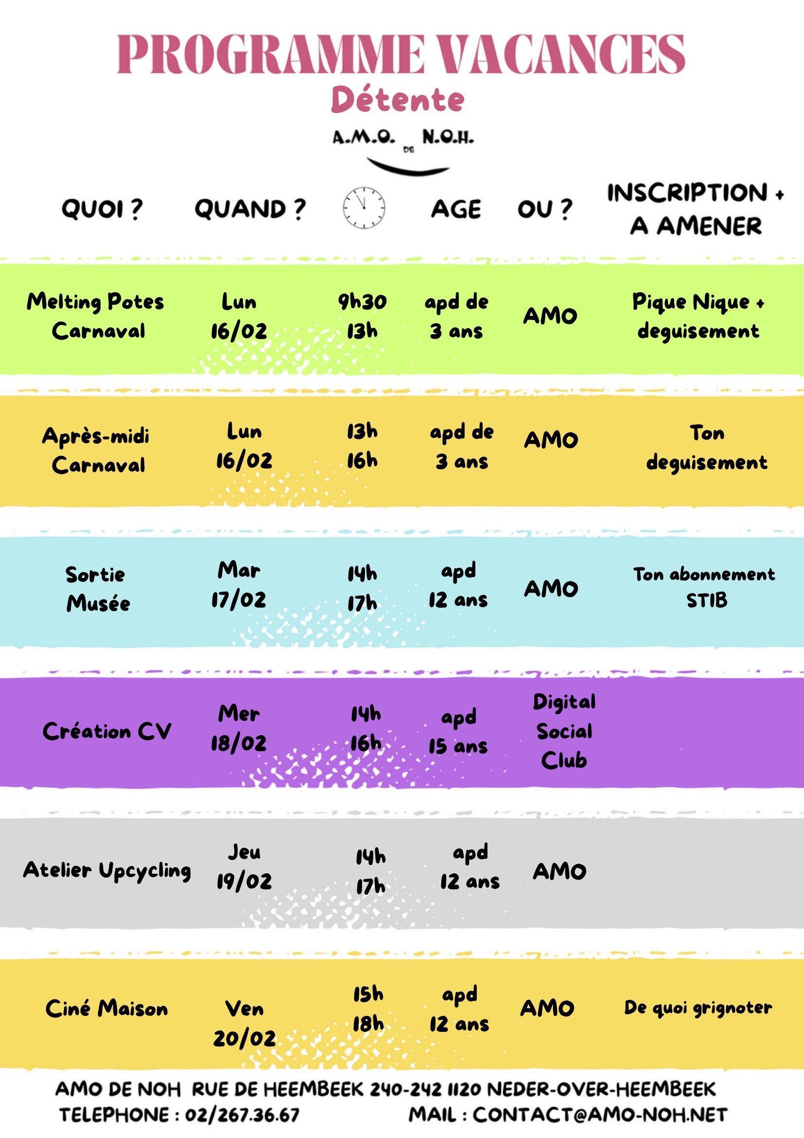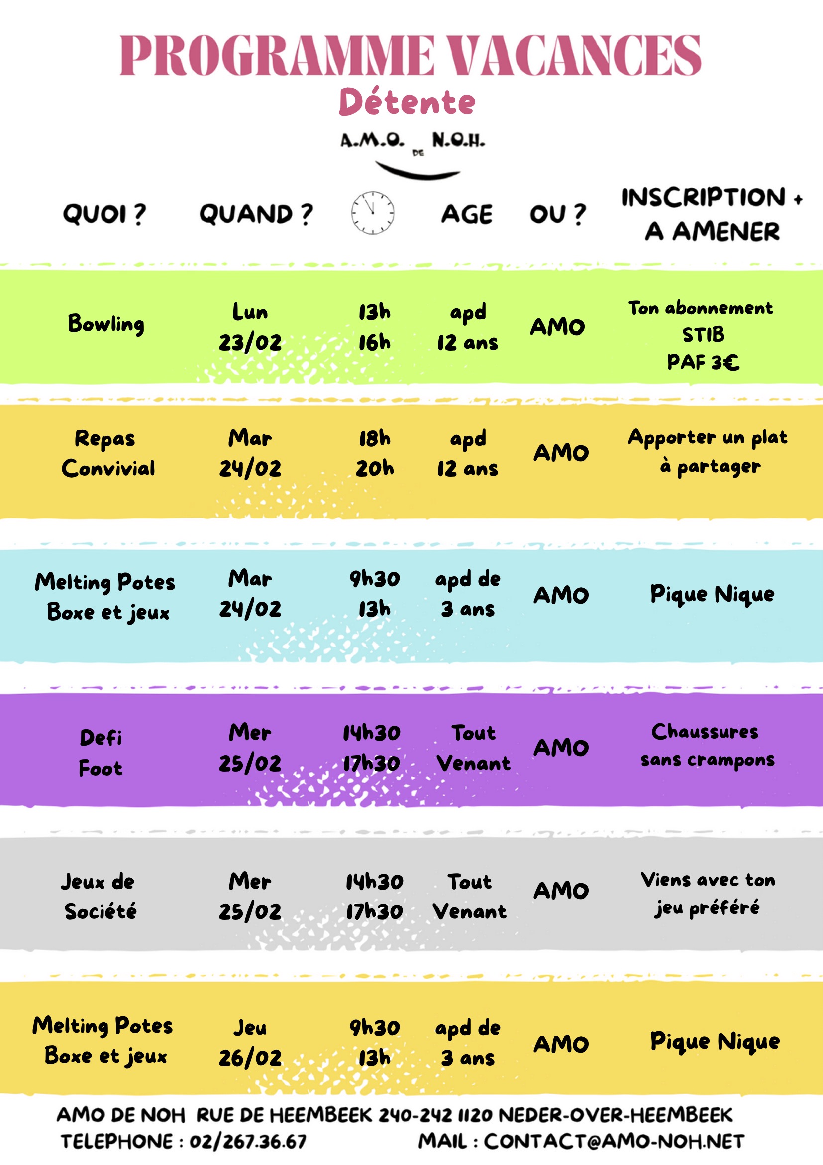 Programme des vacances de détente de l’AMO