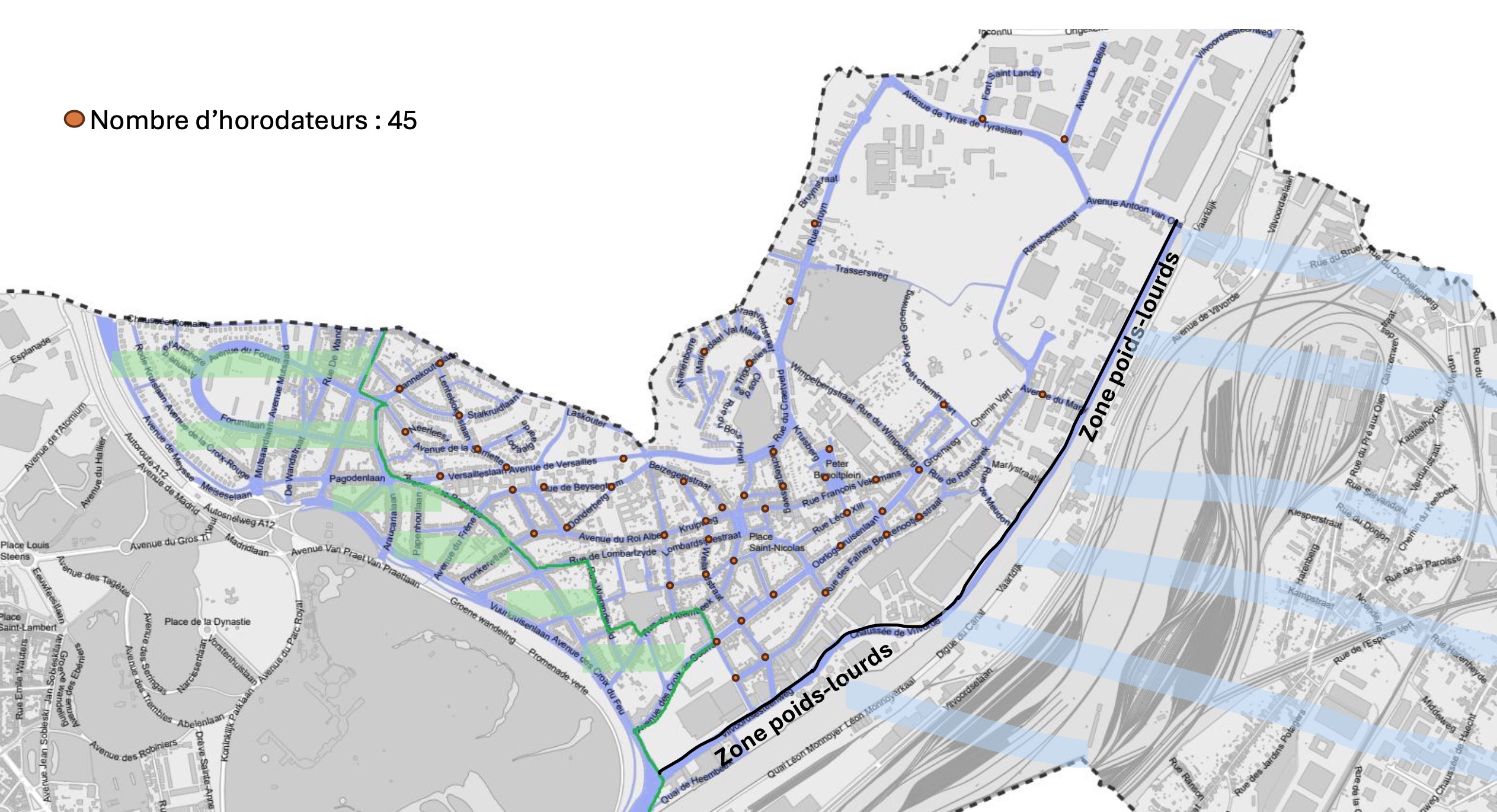 Ci-dessous le plan avec l’emplacement des 45 horodateurs installés à NOH